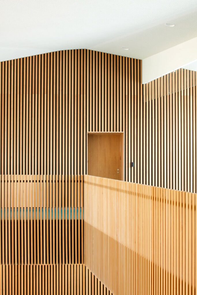 - Bio-based and local materials: The use of a solid wood structure enables the building to achieve Level 3 certification under the “Bio-Based Building” label by using over 36 kg of bio-based materials per square meter. The materials used are also local, which reinforces the sustainability approach of the project.